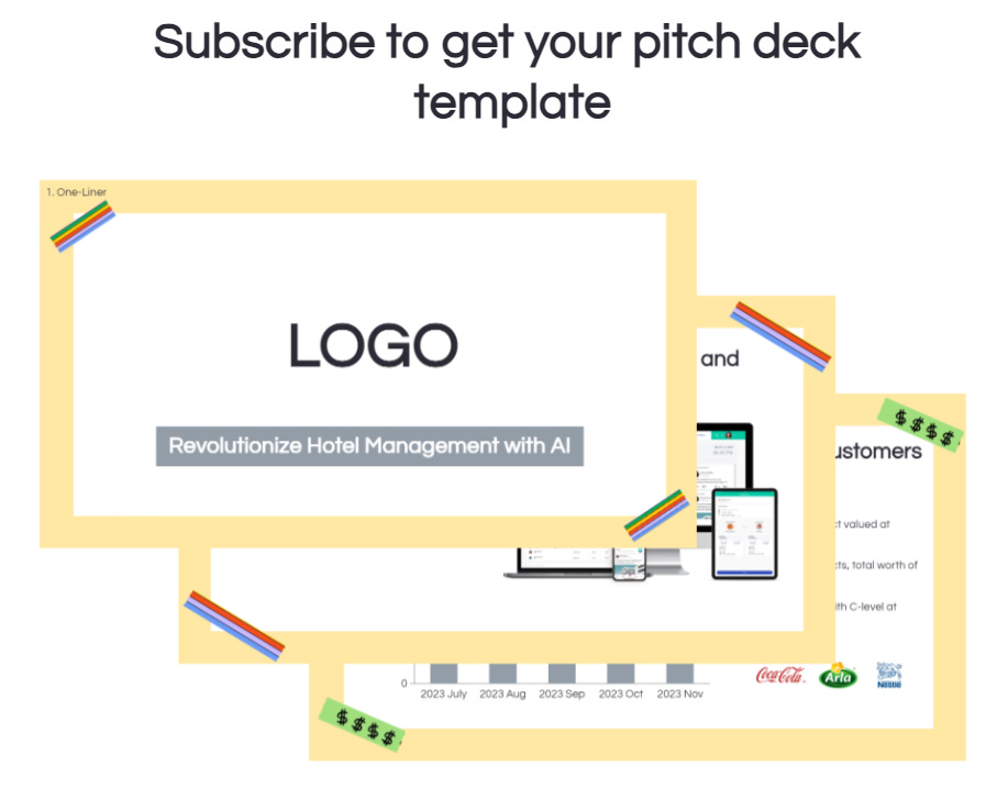 Join the club of ambitious founders: fundraise smarter and shorten the time to product-market fit. Subscribe and get our pitch deck template in your email inbox:
